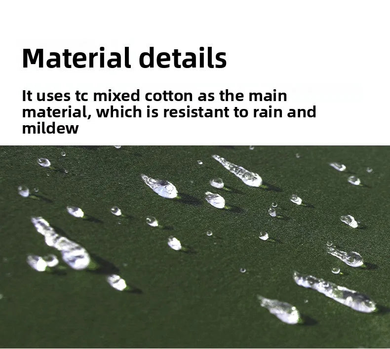 Durable Material: Made from TC cotton, offering resistance to rain and mildew, ensuring longevity and reliability in various outdoor conditions.
