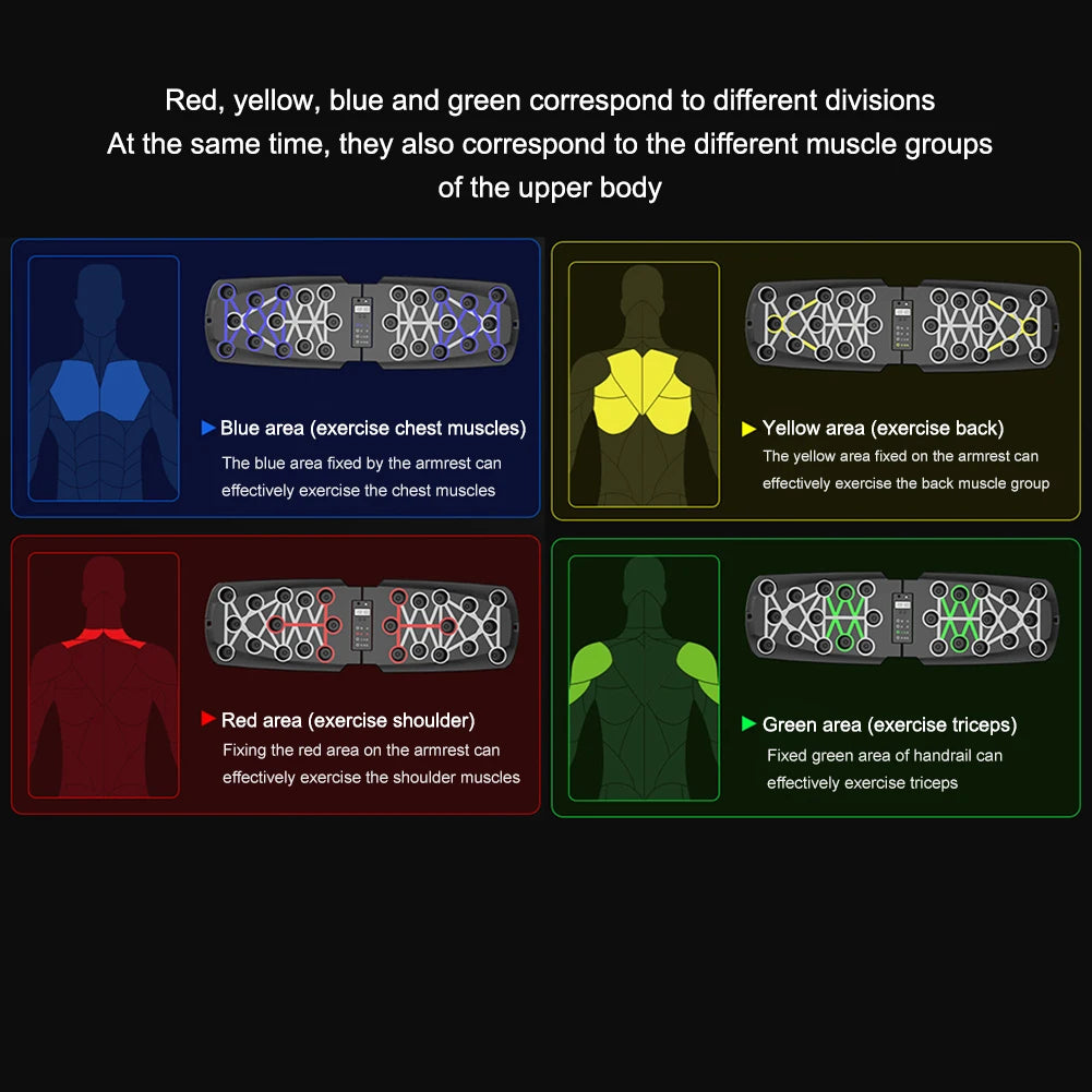 4. Accurate training objectives in four areas: exercise different muscle groups accurately. Red, yellow, blue and green correspond to different areas, and also correspond to different muscle groups in the upper body.