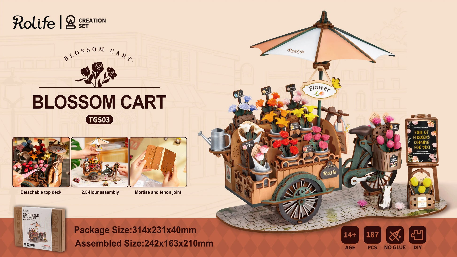 Robotime 3D Wooden Puzzles Blossom Cart Kit Decor Craft Gifts Model Kits for Adults Women Girls Boys