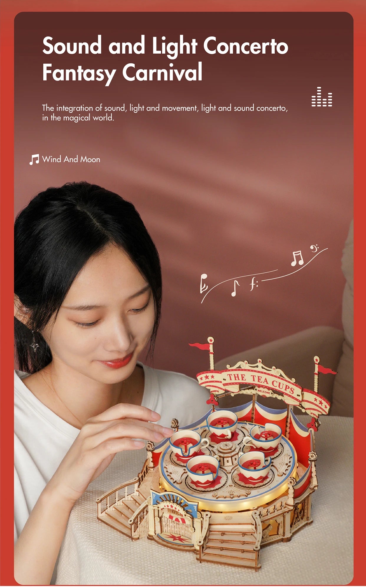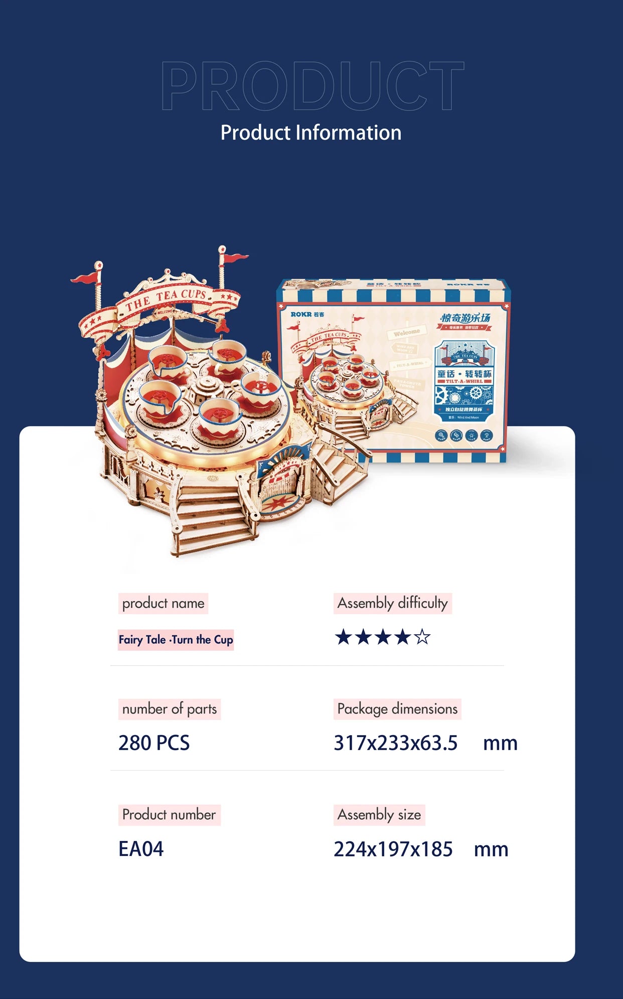 Robotime Rokr Tilt-A-Whirl The Tea Cup Amusement Park Series Building Toy Birthday Xmas Gifts for Kids Children 3D Wooden Puzzle