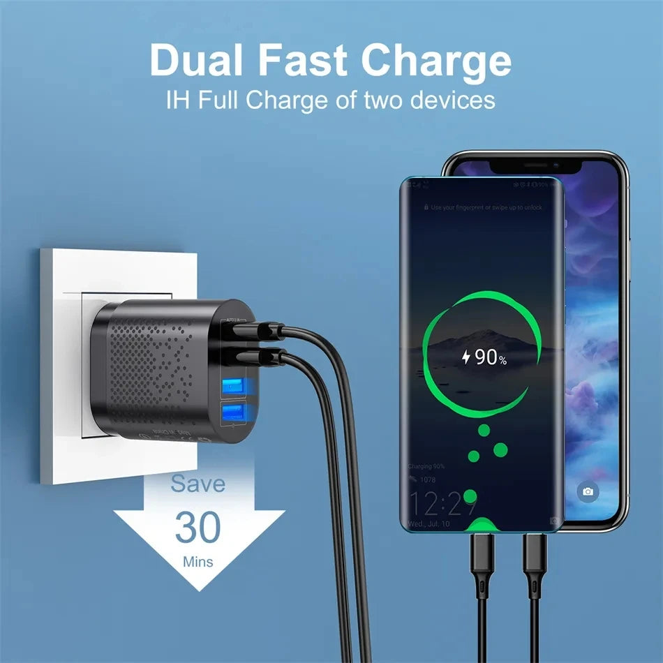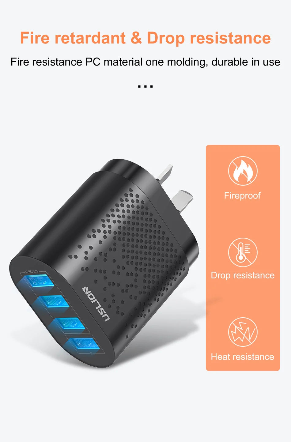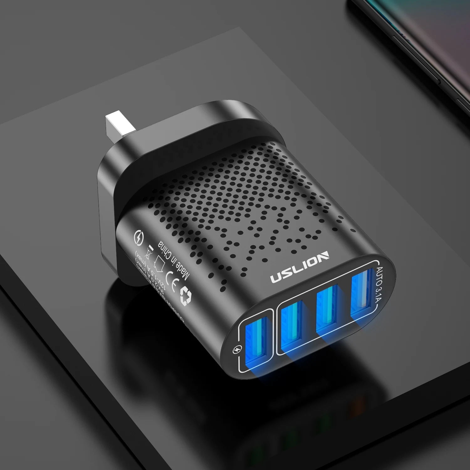 USLION 48W 3A QC3.0 AU Plug USB Charger for Australia Mobile Phone Charger For iPhone 15 14 Samsung 4 Port Fast Wall Chargers